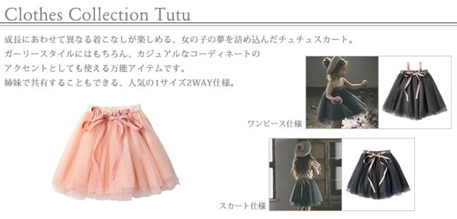【特徴】成長にあわせて異なる着こなしが楽しめる、女の子の夢を詰め込んだチュチュスカート。ベビーの時期はベアトップのワンピースとして着用いただけます。
