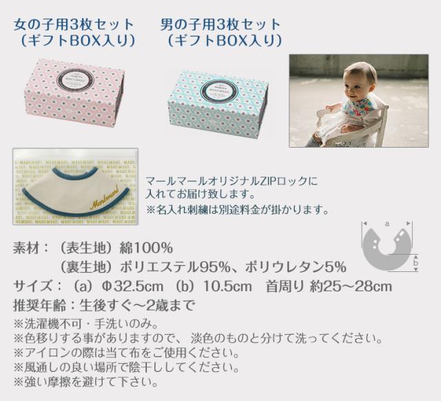 マールマール スタイ ボタニーク 女の子用 3枚セット botanique MARLMARL ビブ まあるいよだれかけ [名入れ 刺繍可能][お祝い 出産祝い]