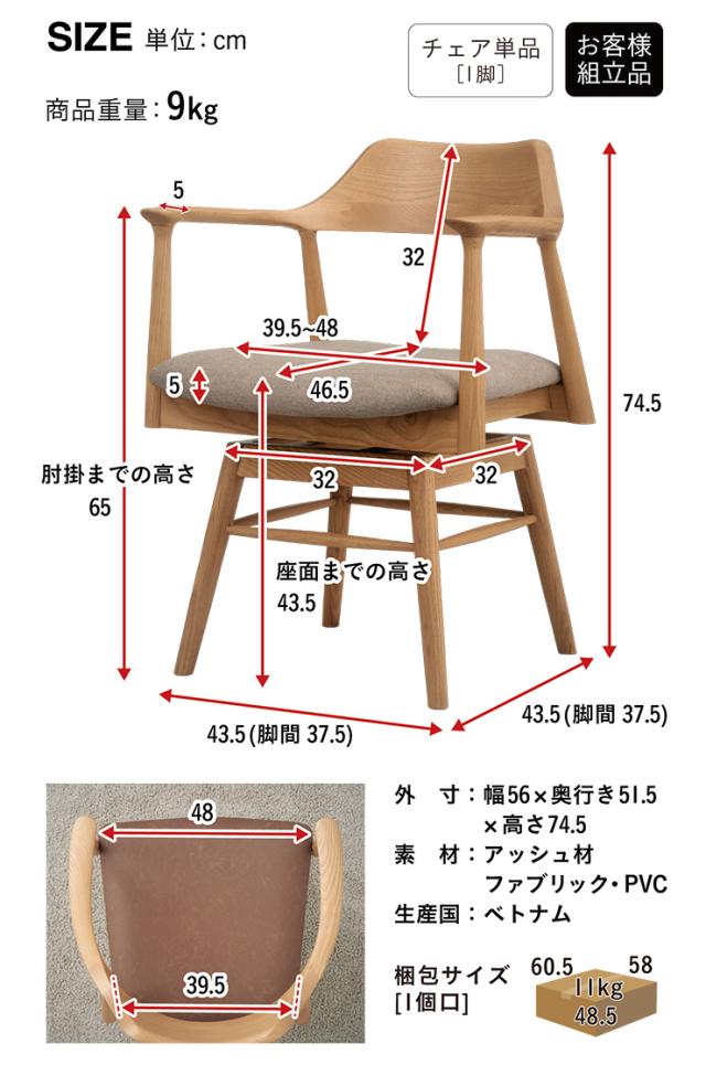 【簡単組立】ダイニングチェア ダイニングチェアー 肘付き 回転チェア Shaun(ショーン) 1脚 4色対応 回転椅子 デスクチェア リビングチェア ダイニング イス 木製 無垢材 木製椅子 食卓椅子 シンプル おしゃれ