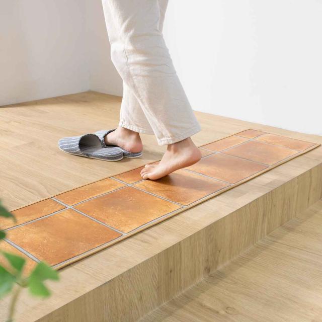 玄関マット 室内用 30×150cm テラコッタ 撥水加工 ( 玄関 マット 框 屋内 拭ける 室内 厚さ5mm キッチン 撥水 防水 抗菌 防カビ 滑り止め おしゃれ かまち 細い タイル調 汚れ 拭き取り インテリア キッチンマット )