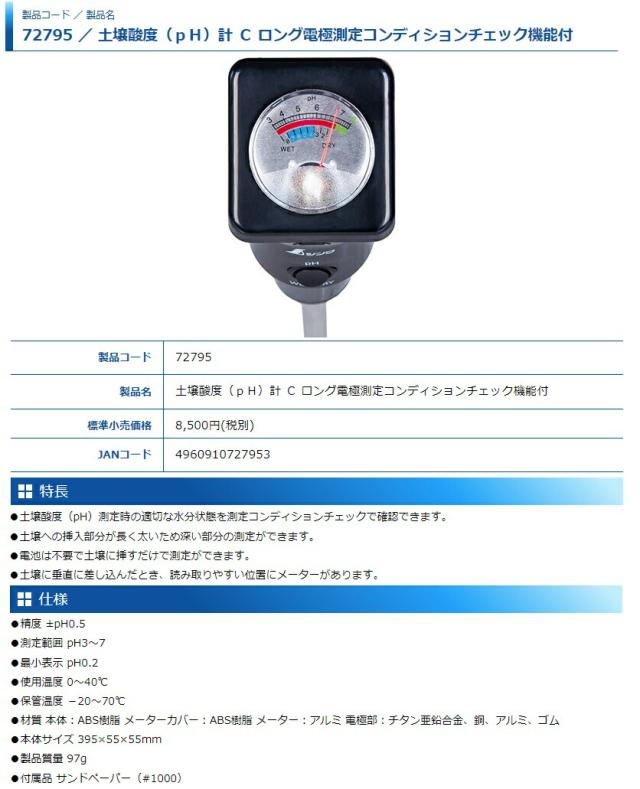土壌酸度(pH)計 C ロング電極測定コンディションチェック機能付 72795