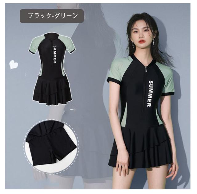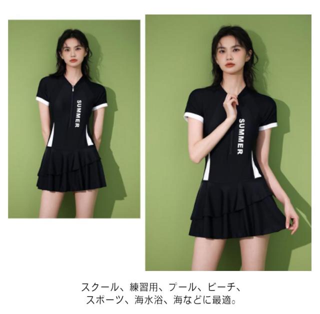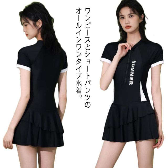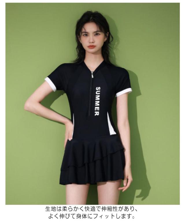 水着 レディース フィットネス水着 オールインワン 半袖 ジム プール 競泳水着 フロントジッパー 体型カバー ママ水着 スイムウェア プール スイミング 水泳 みずぎ 露出控えめ パッド付き ノンワイヤーおしゃれ 送料無料