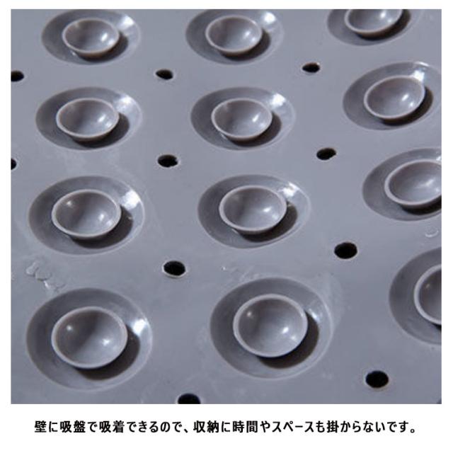 | 仕事帰りにフットマッサージで疲れを癒すこともできるお風呂マット。 底面に強力吸盤でしっかり浴槽や地面と吸着固定し、滑りや転倒を防ぎます。 壁に吸盤で吸着できるので、収納に時間やスペースも掛からないです。 透水穴の設計で水切れがよく、常に清潔で安心してご利用になります。 汚れたら洗い流すだけ!柔らかくて曲げられる持ち運び便利です。 | |
