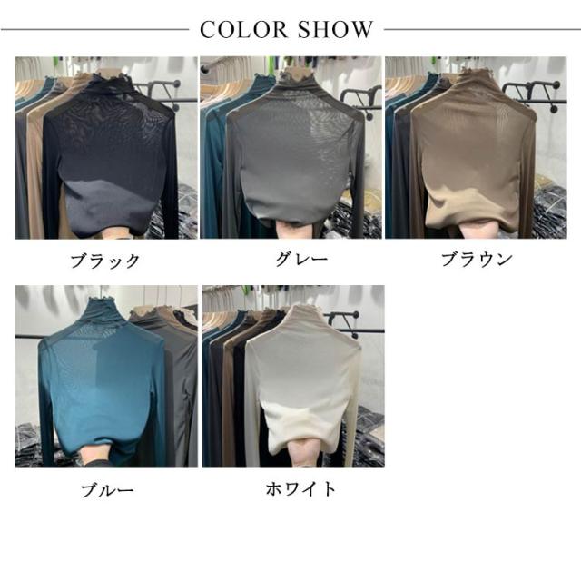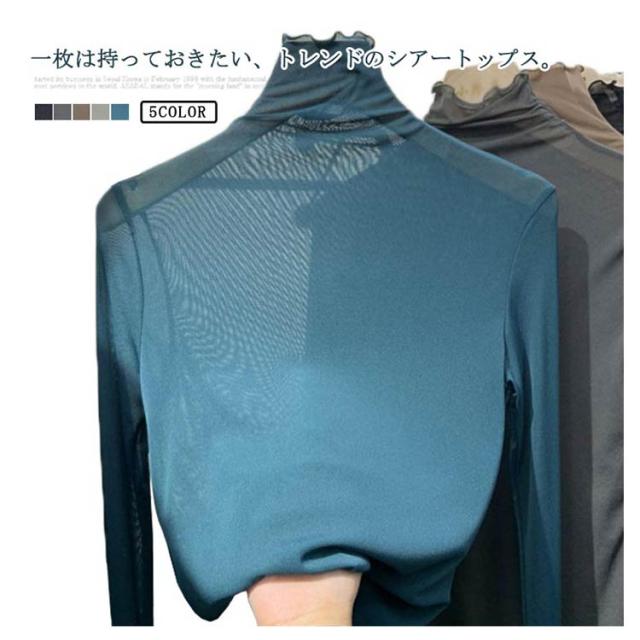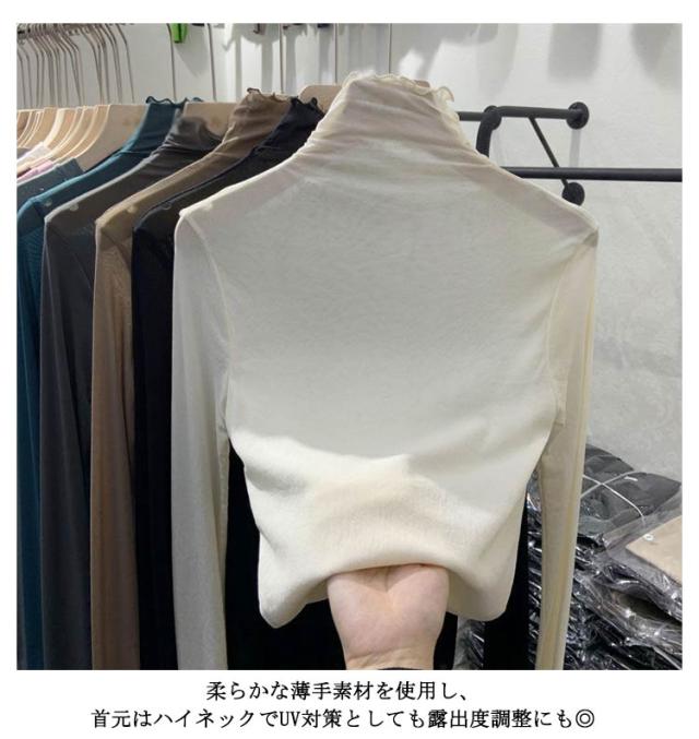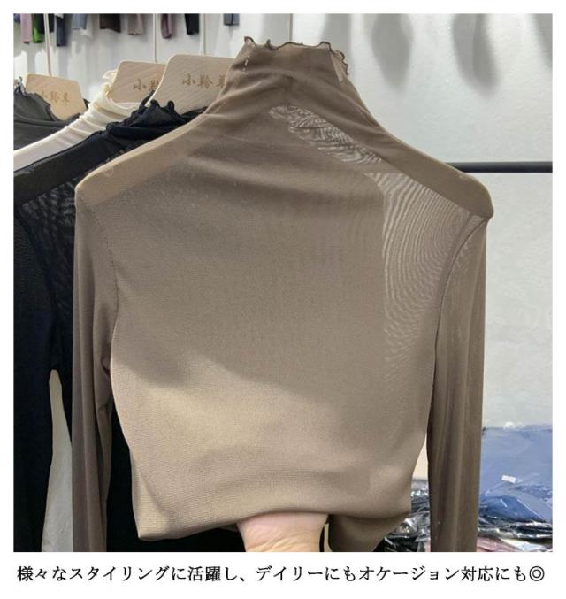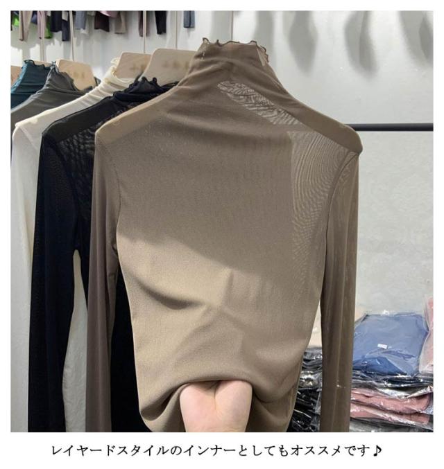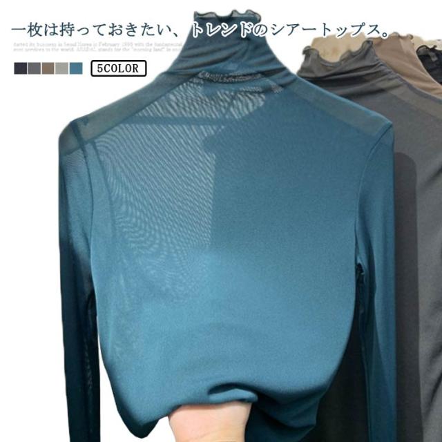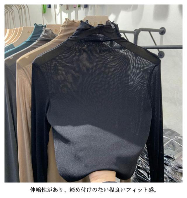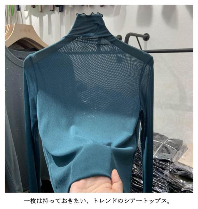 シアーハイネックトップス シアートップス 送料無料 レディース シアートップス チュールトップス 長袖 ハイネック 透け感 レイヤード 薄手 きれいめ 重ね着 薄手 インナー トップス 無地 伸縮性 春 夏 秋 冬