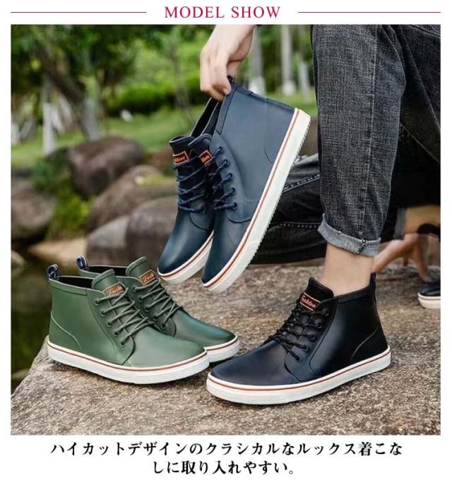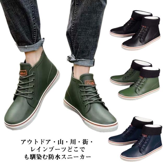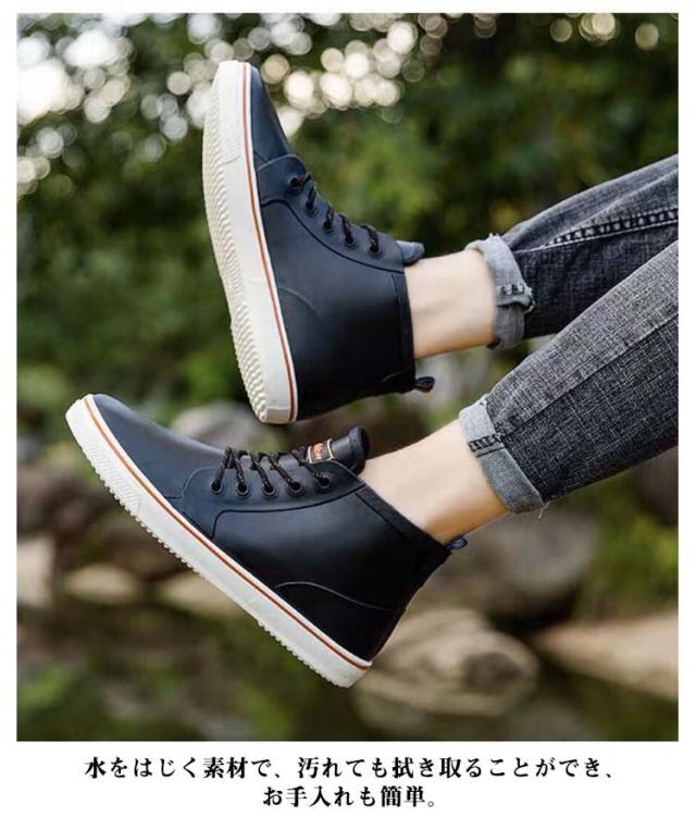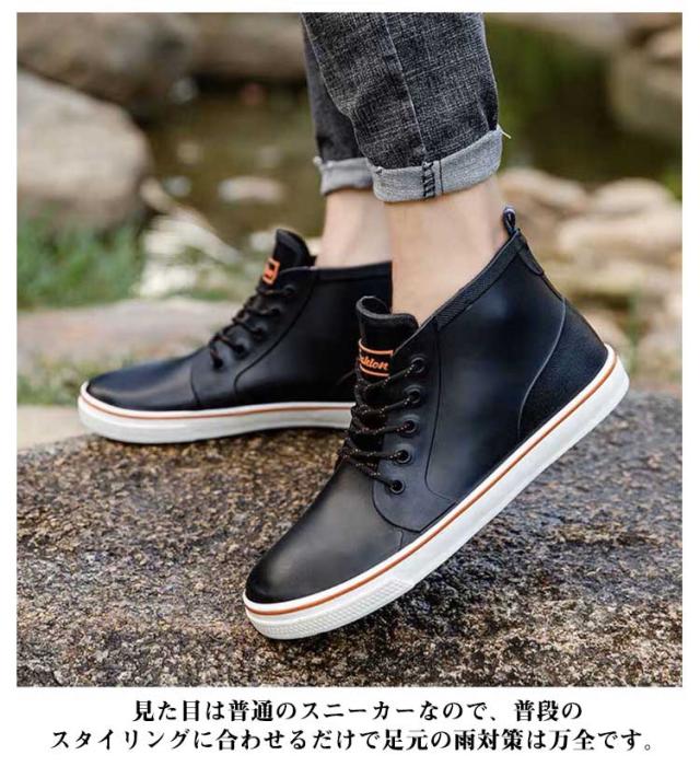 レインシューズ レインブーツ スニーカー メンズ 防水 撥水 シューズ レイングッズ 雨靴 レースアップ レインスニーカー 完全防水 ハイカット 幅広 軽量 通勤 通学 梅雨 台風 アウトドア キャンプ 父の日 男性 紳士 ギフト