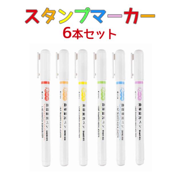 スタンプマーカーペン カラーローラースタンプペン 6色セット カラーペン マーカースタンプ ローラースタンプ コロコロスタンプ 文房具