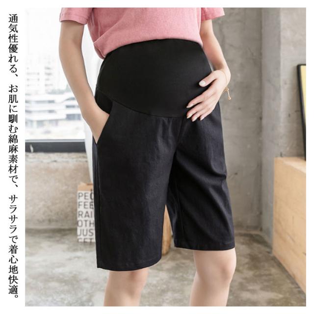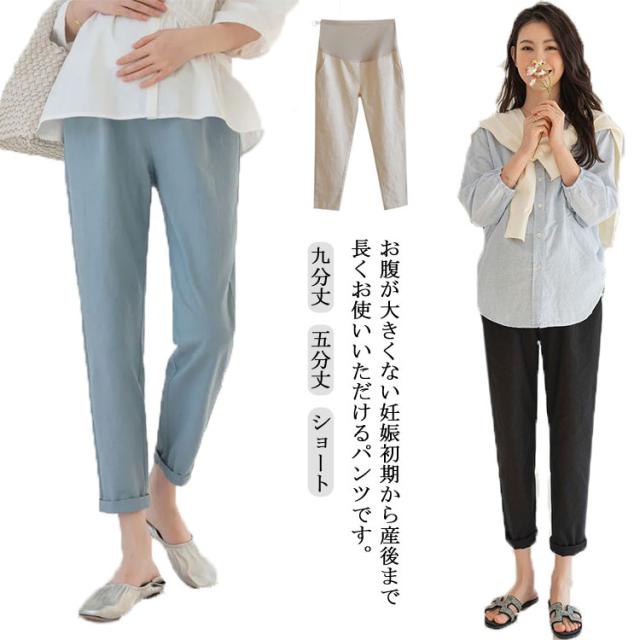 マタニティパンツ テーパードパンツ コットン リネン マタニティ パンツ 薄手 春夏 ルームウエア ショートパンツ 部屋着 妊婦服 ゆったり カジュアル 無地 オフィス お出かけ 外出 産前産後 アジャスター付き M L XL 2XL