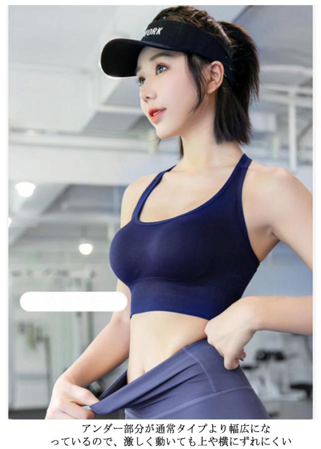| 肌触りがよい、それに伸縮性に優れた素材を採用したスポーツブラです。 伸縮性のある生地を仕様しており、しっかりフィットするので揺れない痛くない! 下垂防止にも効果抜群! 気になる余分なお肉もフラットになり、背中の段差なし、食い込みにくいからタイトな服を着ても、背中のラインも綺麗です。 バストを下から支えるアンダー部分が通常タイプより幅広になっているので、激しく動いても上や横にずれにくい設計です。 ブラのズレを気にせずスポーツに集中できます。 | |
