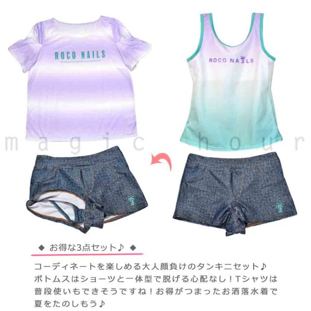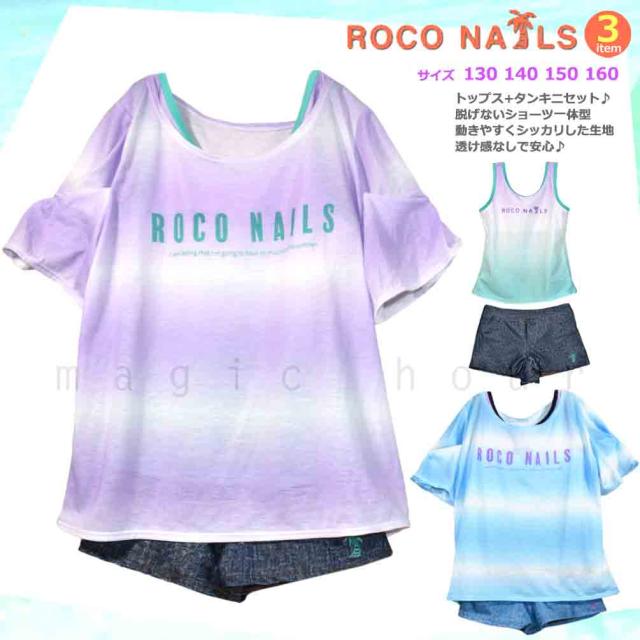 ◆ ROCO NAILS ロコネイル キッズ ジュニア ガールズ タンキニ 水着 Tシャツ 4点 セット ハワイアン スイムウェア ◆