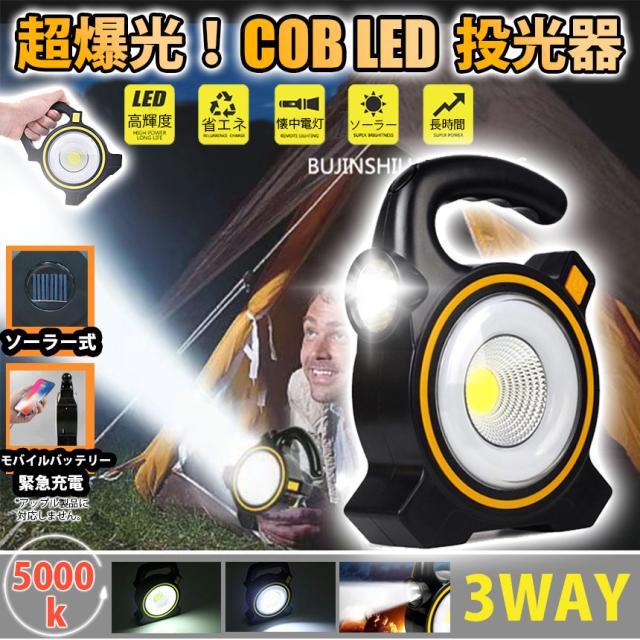 投光器 COBライト LED ワークライト USB充電 ソーラー ポータブル ハイビームライト ロービームライト キャンプ アウトドア 小型 置き型 作業灯 照明