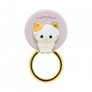 ねこちゃんのスマホリング みけ RING-NEKO04 ネコ 猫 雑貨 スマートフォン リング 回転 スタンド 縦置き 横置き【メール便送料無料】