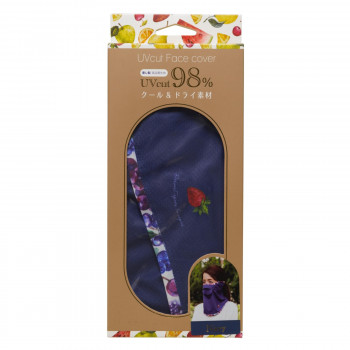 UVカットフェイスカバー フルーツ柄 ネイビー FC-F01 日焼け防止 デコルテ 首周り マスク焼け防止 飛沫防止 呼吸しやすい レディース Cゾーン ワンタッチ 吸汗速乾【メール便送料無料】