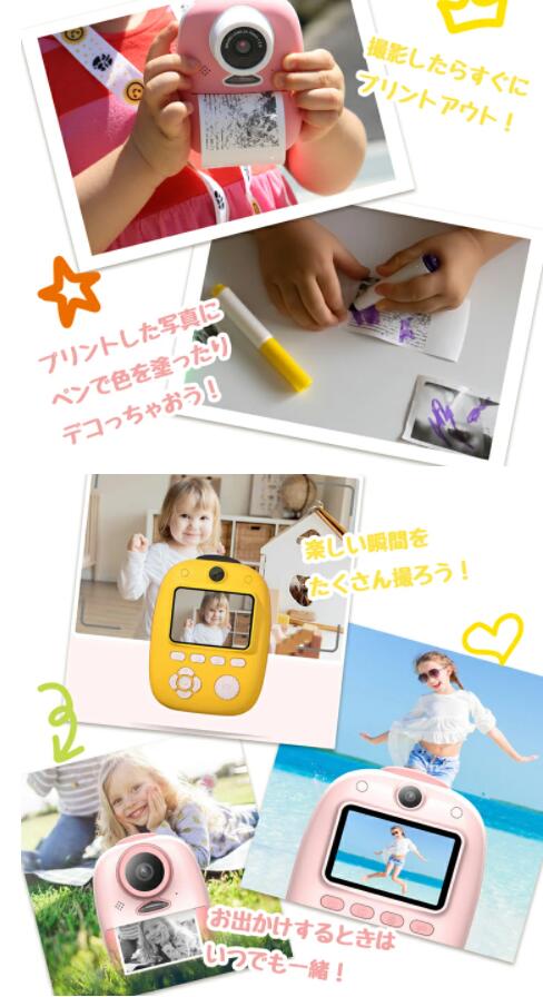 キッズカメラ 印刷 子供用プリントカメラ 印刷用紙 32Gメモリーカード 高画質 トイカメラ 感熱紙 キッズ プリントデジカメ