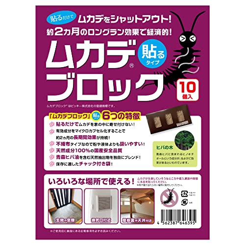 ムカデブロック 貼るタイプ 10個セット 室内用 青森ヒバ油 【 ムカデ対策 ムカデ退治 忌避剤 】