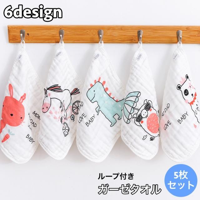 ガーゼタオル ループ付き 吊り下げ 引っ掛け ベビー 赤ちゃん 新生児 子供 沐浴 よだれ拭き フェイスタオル ハンドタオル ミ
