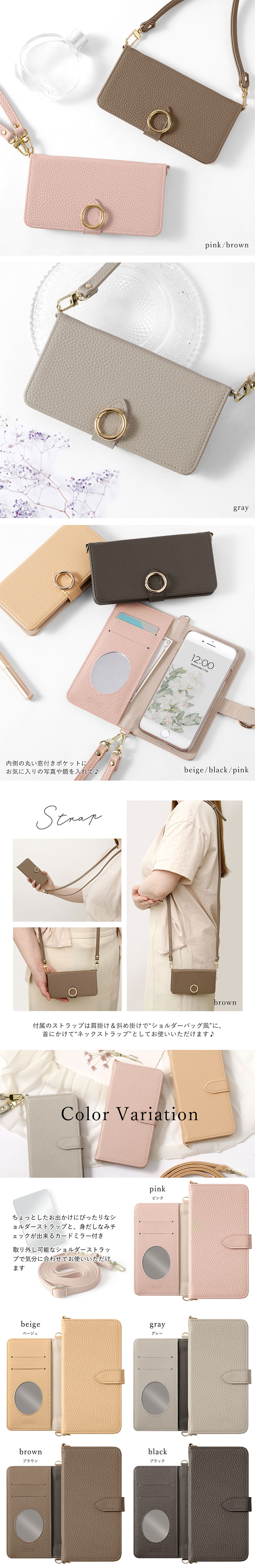 ■シンプルなデザインでお出かけに便利なショルダーストラップ付きスマホケース