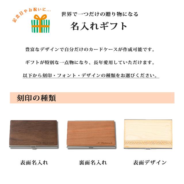 木製 カードケース 名刺入れ 片面刻印あり レーザー刻印 名入り 名前入り ic ステンレス 内装:名刺ポケット X1 (最大20枚収納可能) wal-013-name メール便可4