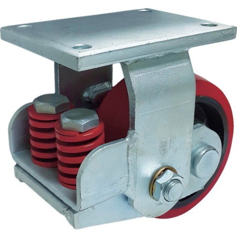 ●バネ付の超重荷重静音緩衝キャスターです。●運搬台車、重量物運搬用です。●牽引作業に適しています。