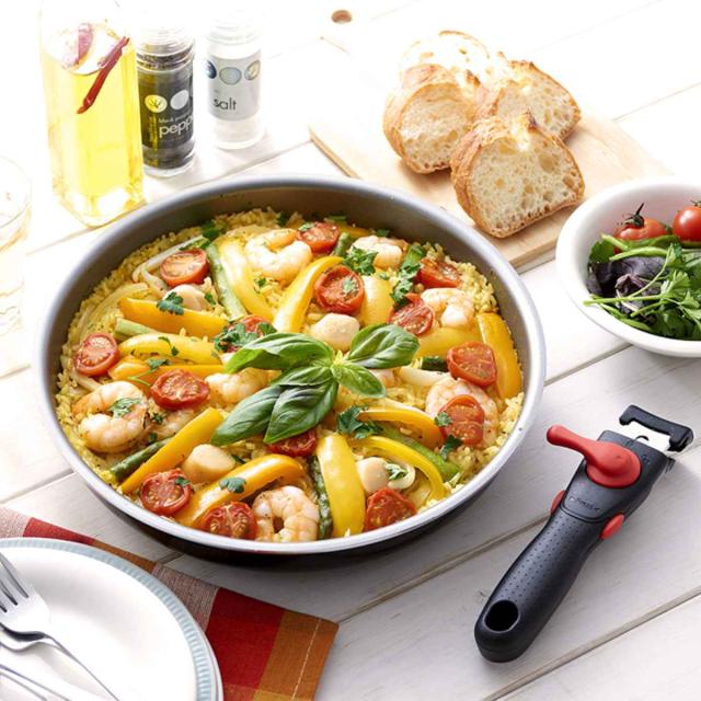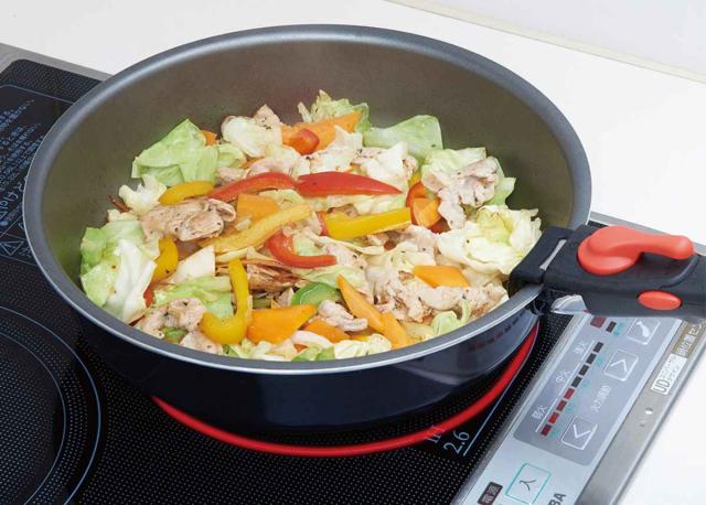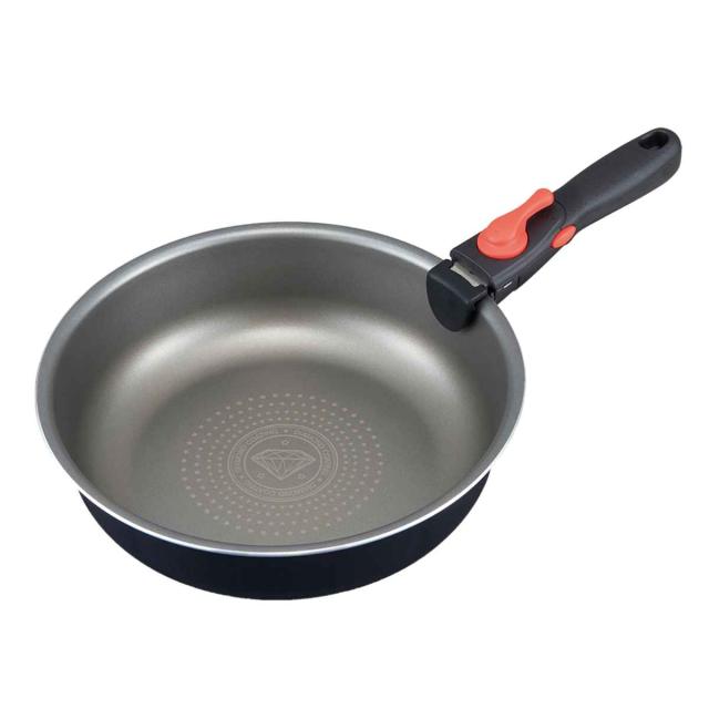 取り外し可能な脱着式ハンドルのフライパンです。メインのお料理にも副菜にも使いやすい26cmです。深さがあるので、チャーハンなどの炒め料理はもちろん、煮込み料理にもおすすめです。ハンドルを取り外して、アツアツのまま食卓へ出せます。