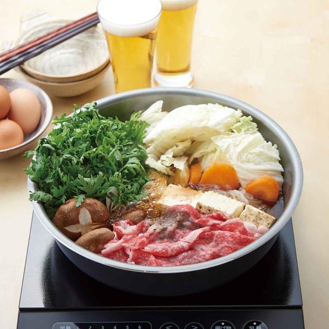 ハンドルを取り外して、すき焼きなどの鍋料理も食卓で楽しめます。専用鍋を用意しなくてもいいので便利です。