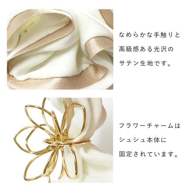 お花の立体ワイヤーチャームが可愛い、シンプルなサテンシュシュ。