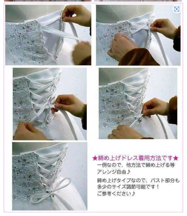 ※こちらは編み上げタイプとなりますので、バスト・ウエスト部分4cm前後調節可能。