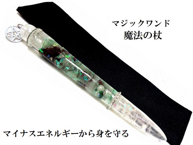 マジックワンド(魔法の杖)の先端がアンテナの役割となり、使い主にとって良いスピリチュアルエネルギーの氣を入れ、使い主にとって嫌なスピリチュアルエネルギーの氣を掴み遠くへ放り去るというものです。