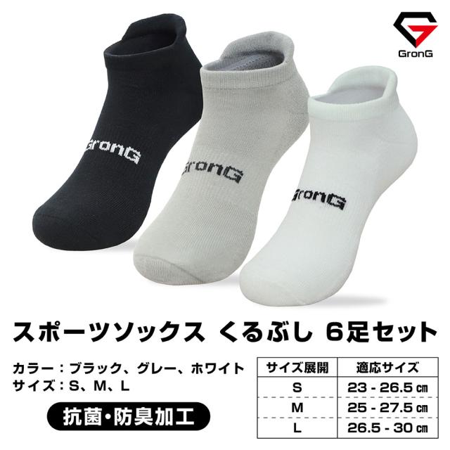 グロング GronG スポーツソックス 靴下 くるぶし COOLMAX(R)ファイバー配合 吸水速乾 抗菌・防臭加工 選べる 6足セット