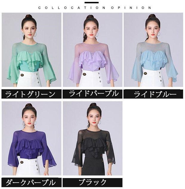レオタード 単品 社交ダンス レッスンウェア フリル パッド付き レディース 長袖 シャツ ダンス トップス 女性 ラテン チャチャチャ ルンバ サンバ ダンスウェア 練習着 モダン スタンダード S/M/L/XL/2XL/3XL dm553c0c0c9