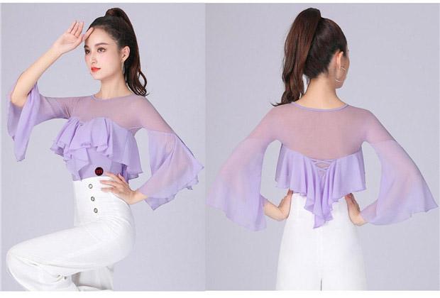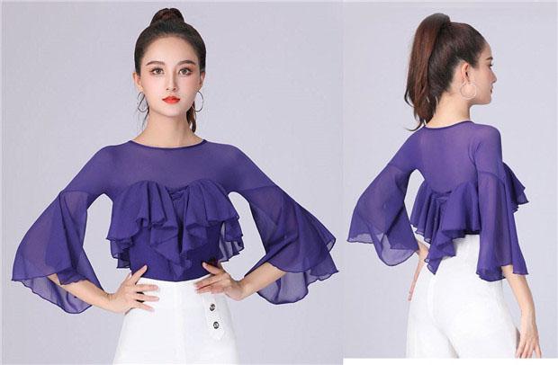 【送料無料】レオタード 単品 社交ダンス レッスンウェア フリル パッド付き レディース 長袖 シャツ ダンス トップス 女性 ラテン チャチャチャ ルンバ サンバ ダンスウェア 練習着 モダン スタンダード S/M/L/XL/2XL/3XL