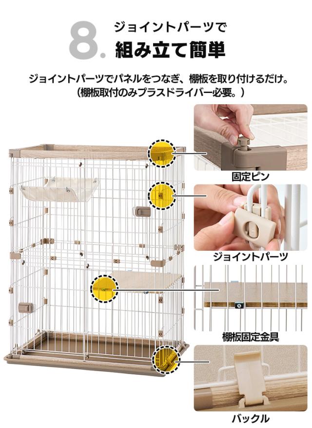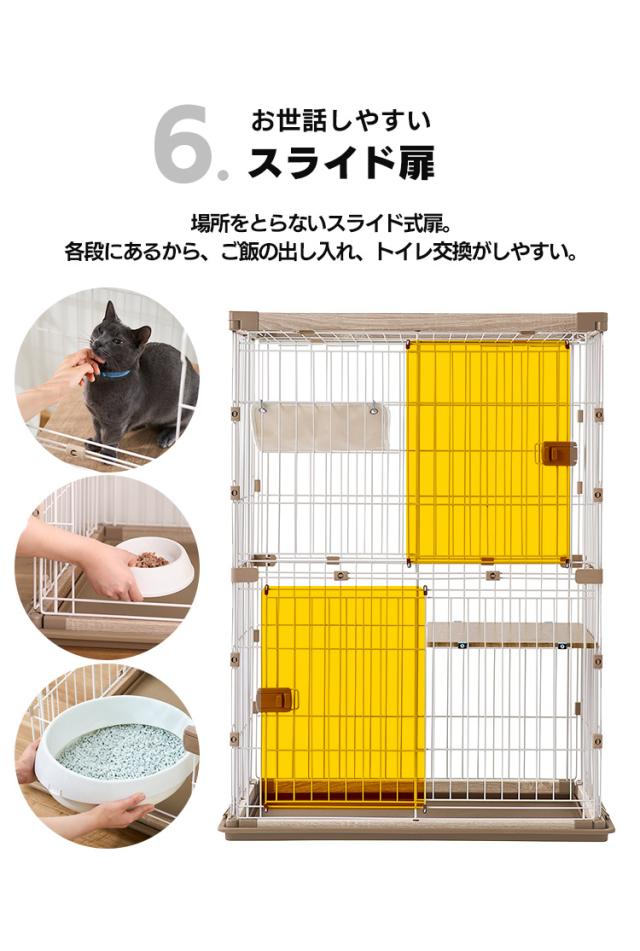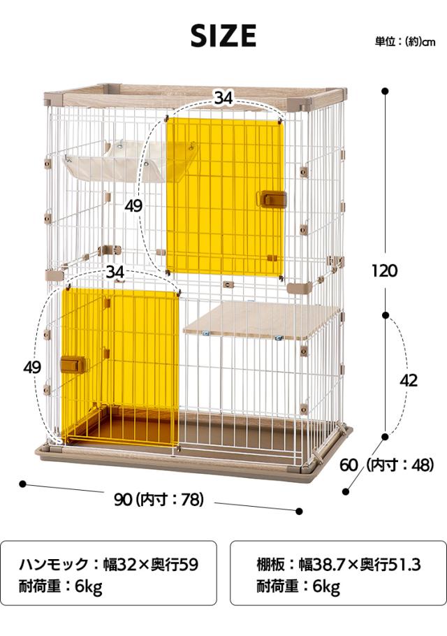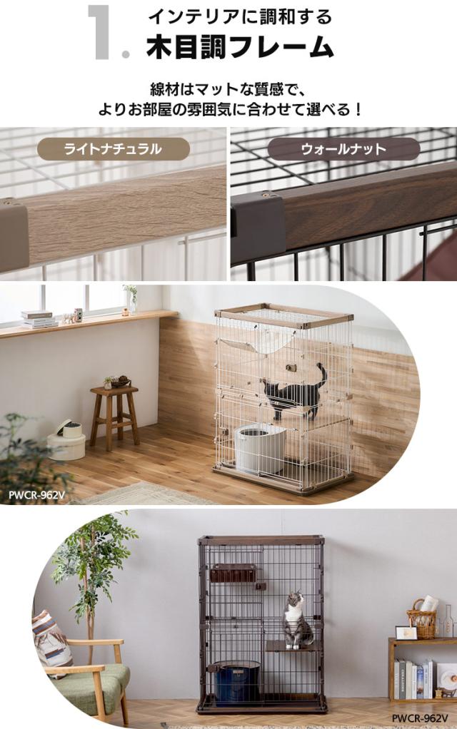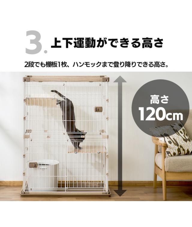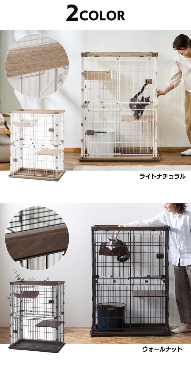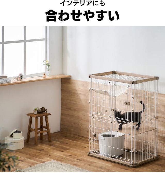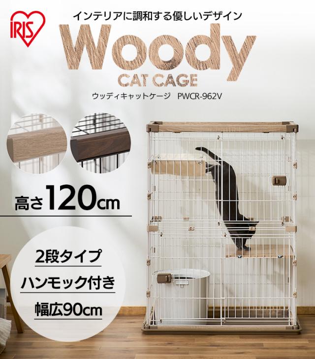 キャット ケージ 2段 ウッディキャットケージ2段 ウッディ キャット ケージ 2段 木目調 キャットケージ 猫 ゲージ ハンモック 棚板 留守番 スライドドア 室内 屋内 アイリスオーヤマ 送料無料