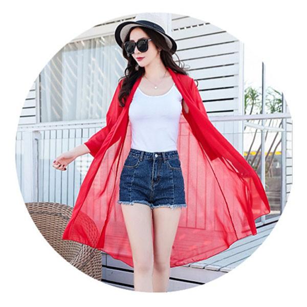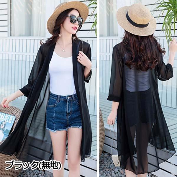 シフォンカーディガン レディース ロング 薄手 uvカット 日焼け止め 冷房対策 ゆったり 無地 花柄 ドット柄 おしゃれ 七分袖 春夏 軽量 羽織 シアー シンプル レッド ブラック ホワイト ネイビー dg003c9c9c9