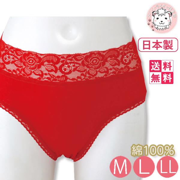 赤パンツ 赤いパンツ 日本製 赤下着 ショーツ 深め レース 綿100% レディース ウエストレース 赤ショーツ M/L/LL おためし
