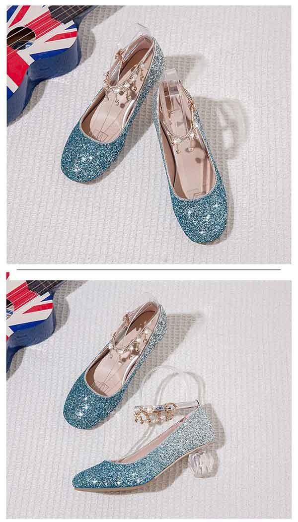 パンプス キラキラ ヒール4.5cm 太いヒール チャンキーヒール アーモンドトゥ ストラップ アンクルストラップ 上品 ゴージャス 結婚式 ピアノ 発表会 綺麗め パーティー シューズ 女の子 靴 イベント 謝恩会 演奏会 演出 小さいサイズ 20.0〜24.5 ピンク ゴールド ブラック ブルー di208g5g5c9