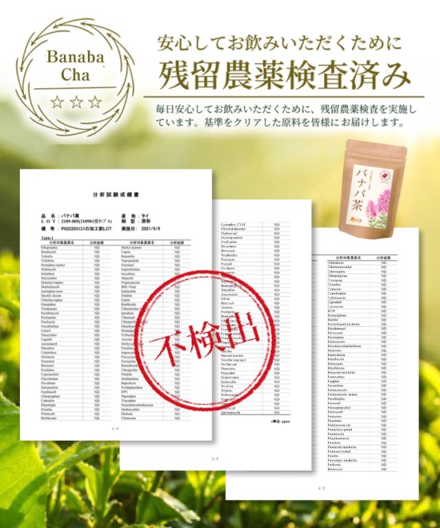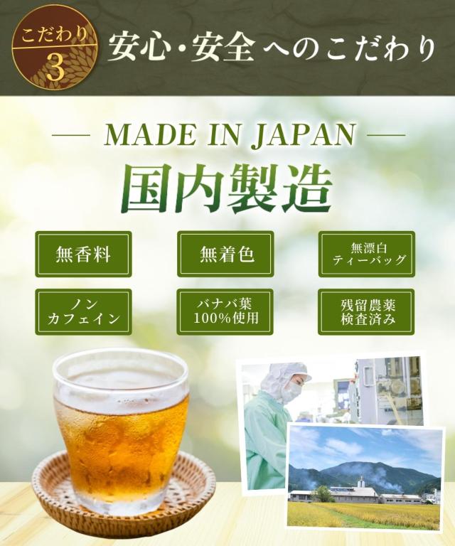 ノンカフェインだから妊婦さんでも安心してお飲み頂けます。自生のバナバを使用しているため、農薬は使用しておりません。