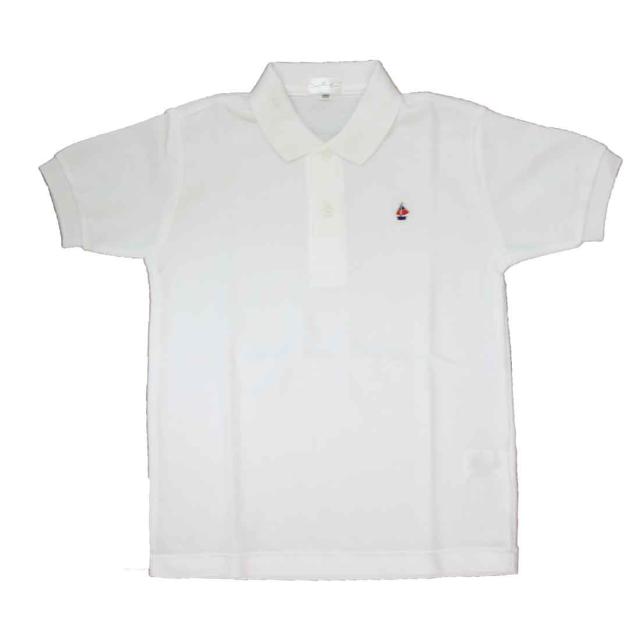 半袖 ポロシャツ 綿100% ヨット ワンポイント 刺繍入り 子供用 キッズポロシャツ ポケットなし 白 お受験 通園 通学 100cm・110cm・120cm・130cm