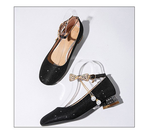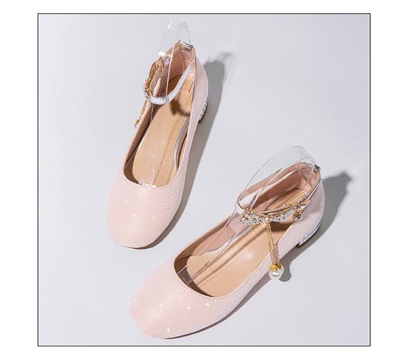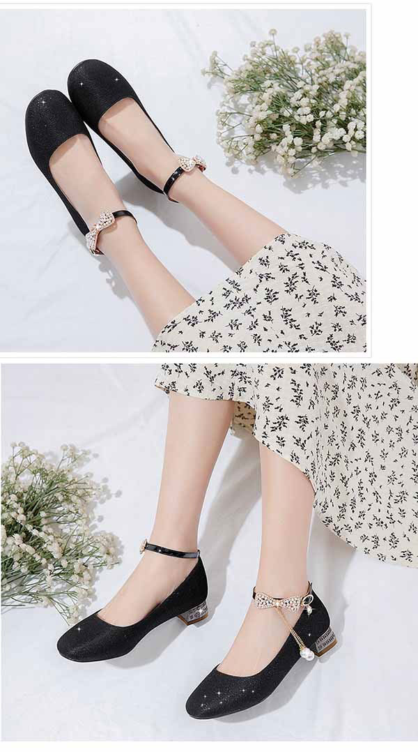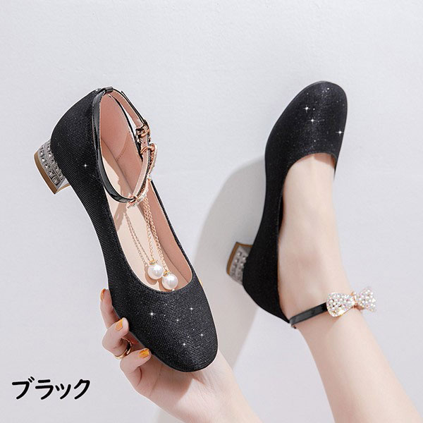 【送料無料】パンプス キラキラ ヒール3cm 太いヒール ローヒール チャンキーヒール アーモンドトゥ アンクルストラップ 上品 ゴージャス 結婚式 ピアノ 発表会 綺麗め パーティー シューズ 女の子 靴 イベント 謝恩会 演奏会 演出 小さいサイズ
