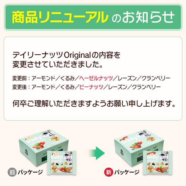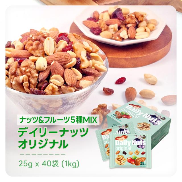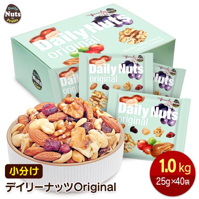 小分けデイリーナッツ Original オリジナル 1kg(25g×40袋)個包装 小袋 アーモンド くるみ 落花生 レーズン クランベリー 食塩不使用 防災食品 非常食