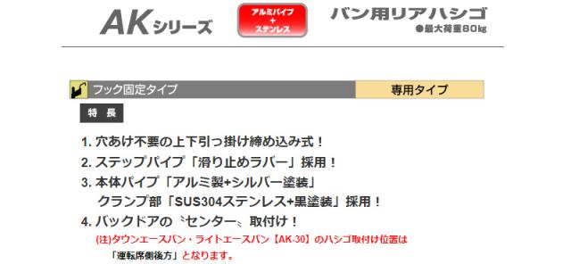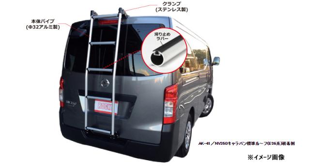 ハイエースバン ハイルーフスーパー ロングボディー ワイド 220K 221K 225K 226K系 ロッキー バン用リアハシゴ AK-34 法人のみ配送