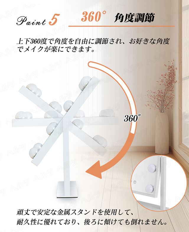 お好みの角度を自由に変えられます!お好きな角度でメイクが楽にできます。