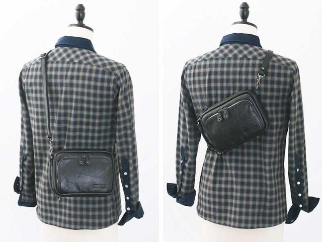 洗練された男の黒 大人の遊びの相棒 本革ミニショルダーバッグ