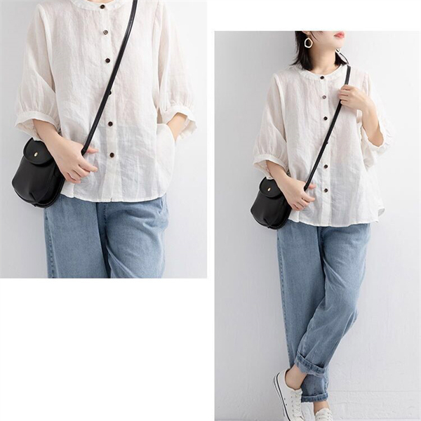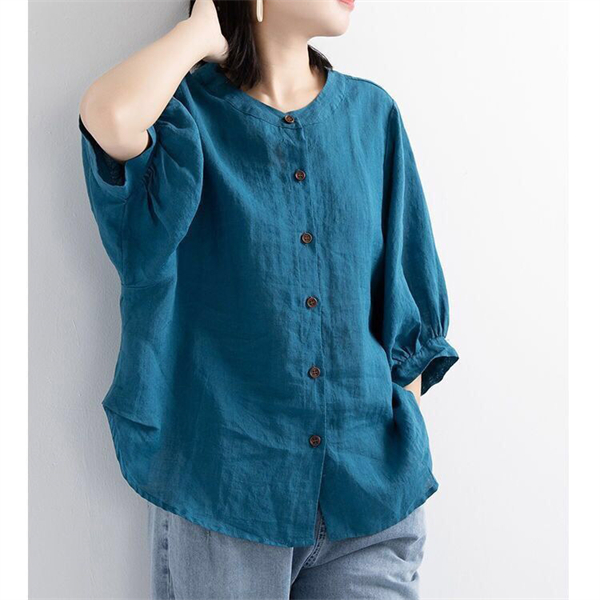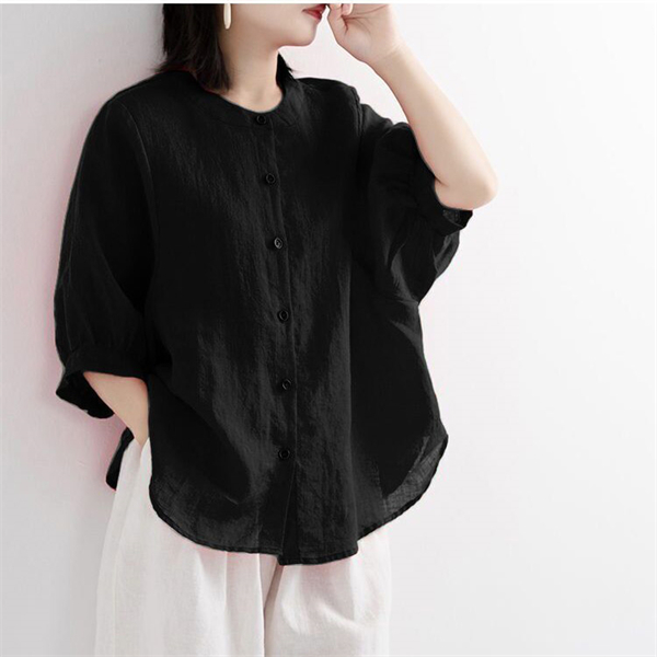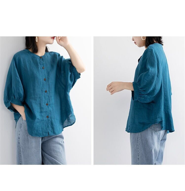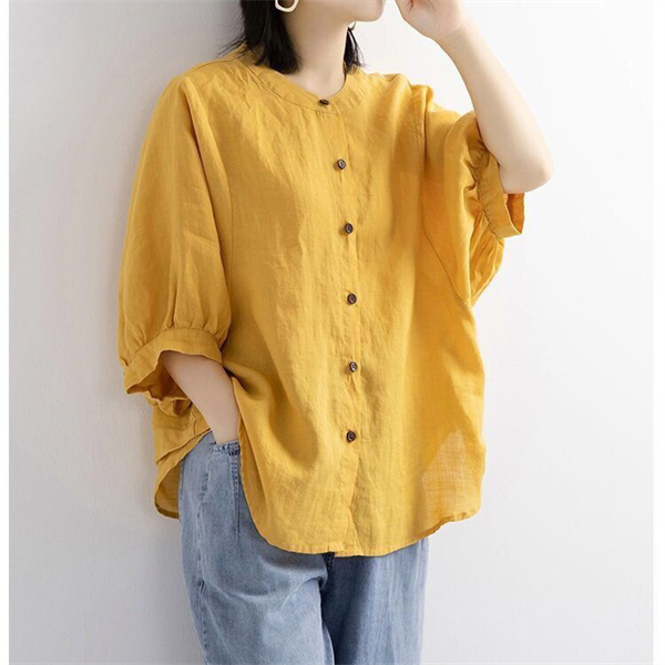 【キーワード】レディースシャツ 綿麻 ブラウス ポロシャツ 夏 リネンシャツ チュニック 七分丈シャツ ナチュラル 薄型 綿麻 シャツ 前開き 柔らかい リネン 体型カバー ゆったり 大きいサイズ 20代 30代 40代 50代 着痩せ