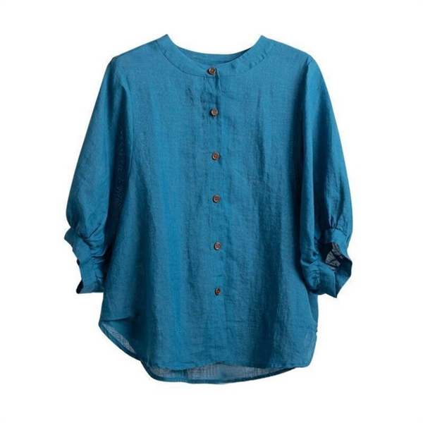 リネン素材の涼やかなシャツブラウス。