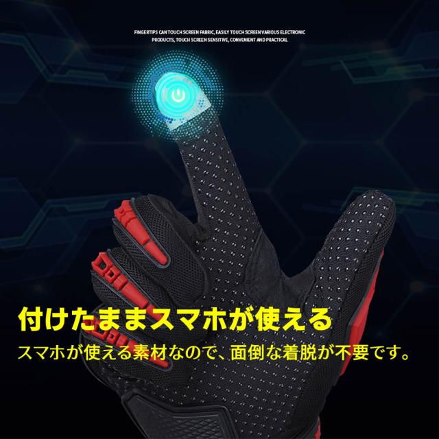 バイク手袋 バイク グローブ 夏 バイク用 グローブ メッシュ 春 夏 秋 スマホ対応 タッチパネル ツーリング オートバイ グローブ 夏用 通気 耐衝撃 男女兼用 スマートフォン操作対応 滑り止め しっかり保護 自転車にも