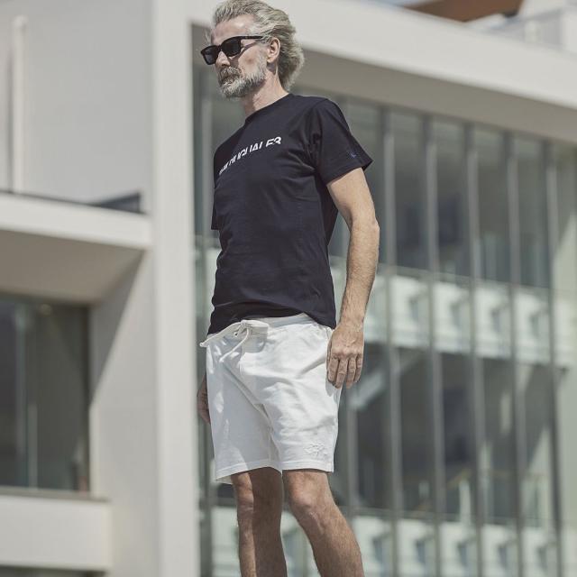 シックなモノトーンの配色でありながら、敢えてずらしたロゴが他とは一線を画すアクセントを添えてくれます。