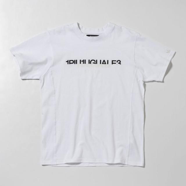 プリントと光沢ラバーで上下を大胆に切り替えたハーフロゴTシャツ。