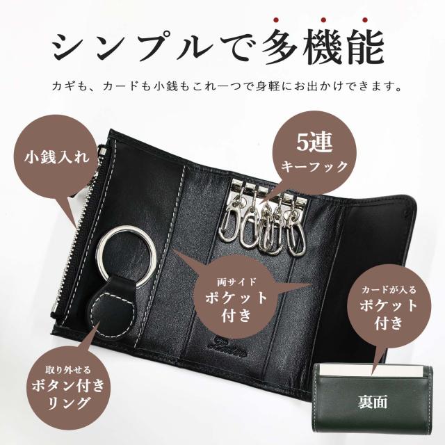 キーケース ユニセックス 5連 父の日 本革 レザー 小銭入れ付き スマートキー ギフト key-002 宅配のみ