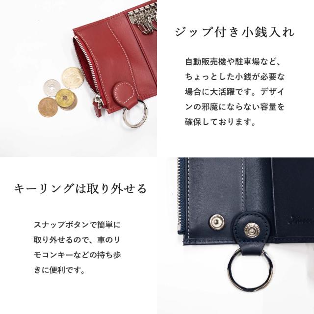 無駄のない便利な機能を1つに集約し、素材から縫製にまでとことんこだわった本革キーケース。