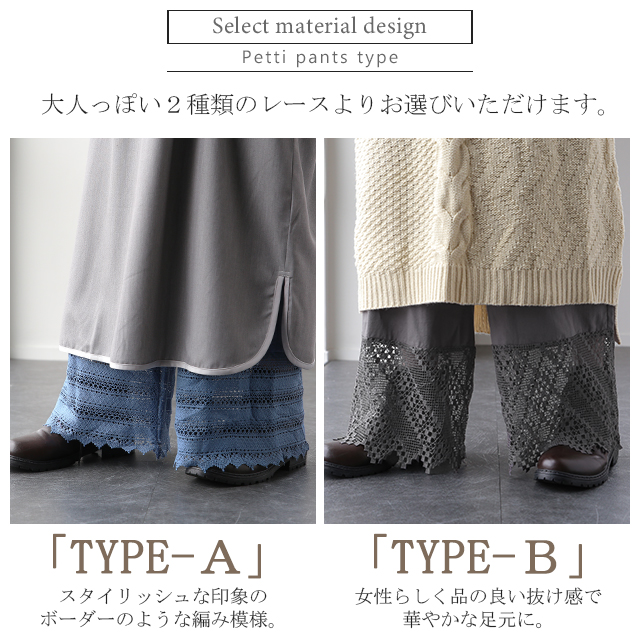 大人のレイヤードが華やぐ重ね着用ペチパンツ。