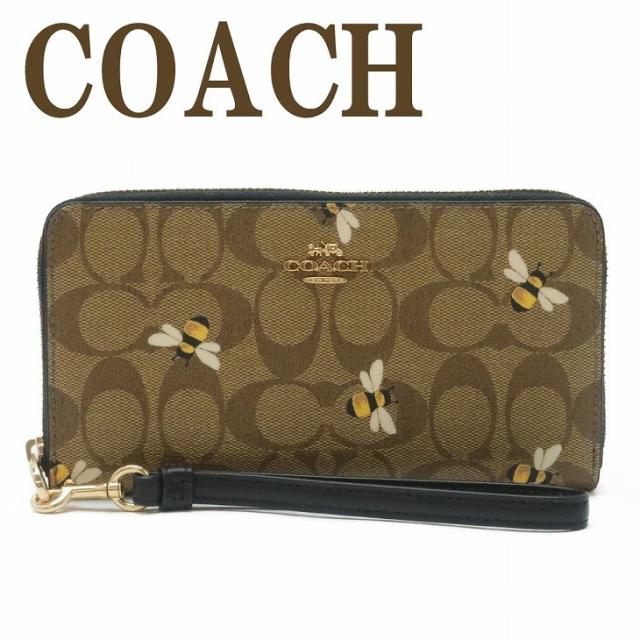 【商品】コーチ COACH 財布 レディース 長財布 ストラップ ラウンドファスナー シグネチャー Bee はち レザー C8675IME7V